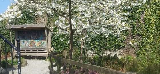 With ample winding paths along which to stroll, this is a perfect location to have a picnic, idle away time hunting a rare find in the second hand book store, or enjoy a seasonal vegetarian meal in the adjoining cafe where the food from the garden ends up on the plates. Tucked away behind the Garden Cafe on Main Street, a number of quirky mosaics cover the walls and a cosy brick-fired pizza hut is fired up weekly in the summer months with hot, fresh food served with the best local ingredients available. You’re invited to enjoy your meal on the round eclectic picnic tables in the poet’s circle, overlooking Merlin’s Garden with its riot of herbs and colours. You can hide away in the Hazel dome, or feel inspired by the energy-saving and heat collecting low impact technologies which are dotted around the garden – sustainability in action. Bring your book, your art, or your instrument, with the option of sheltering from Irish rain.